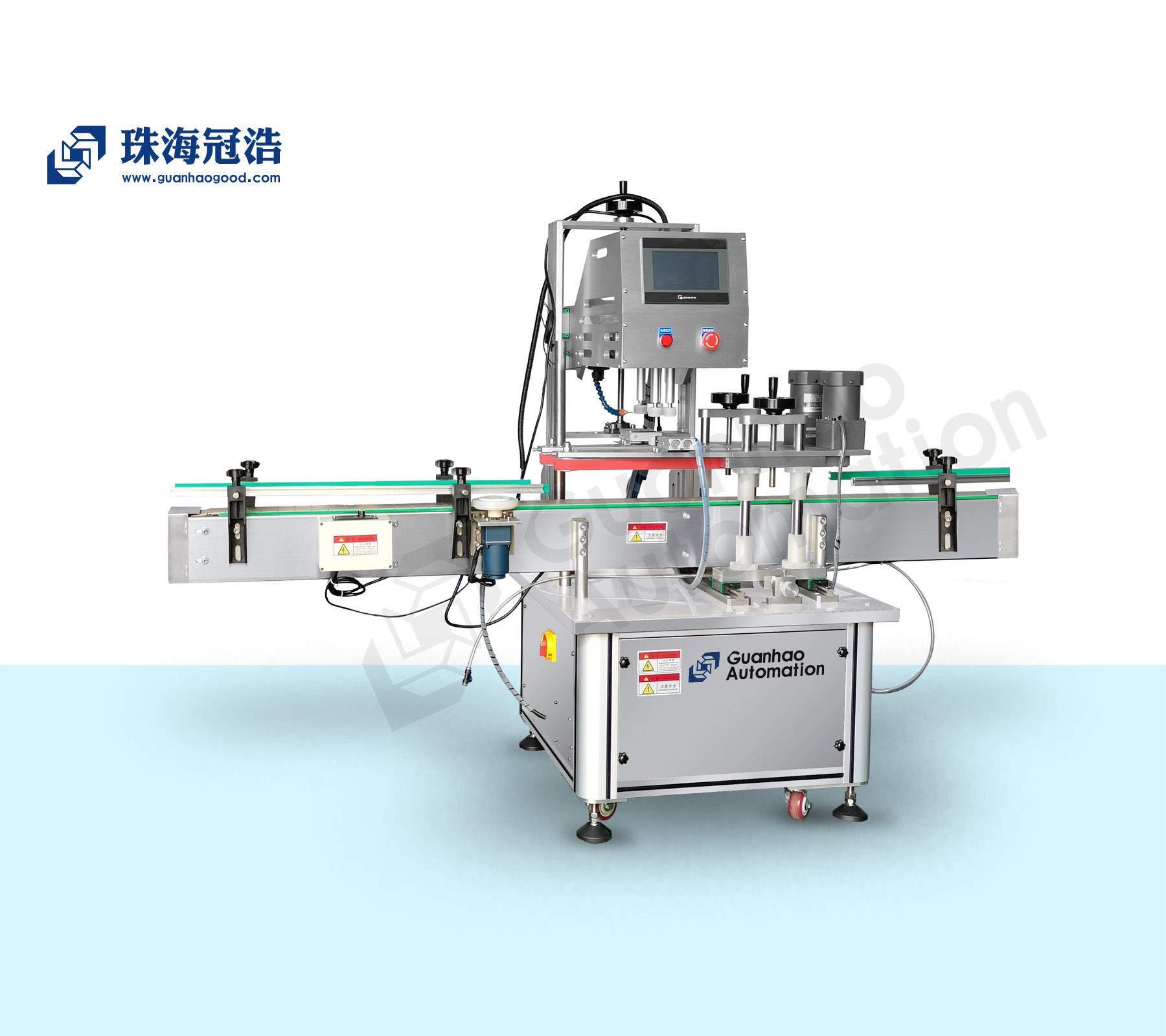 珠海市冠浩機(jī)械全自動(dòng)夾旋式旋蓋機(jī),電氣控制運(yùn)動(dòng),穩(wěn)定性強(qiáng);設(shè)有定位裝置,旋蓋標(biāo)準(zhǔn),操作方便; 鎖蓋范圍寬,可鎖不同形狀規(guī)格的瓶蓋;解決了噴頭、泵頭、噴霧泵、手扣式噴槍旋蓋難的問(wèn)題。旋蓋轉(zhuǎn)速可調(diào),應(yīng)用于玻璃瓶,塑料瓶,大瓶小瓶可兼容,可根據(jù)不同瓶蓋調(diào)節(jié)松緊度。